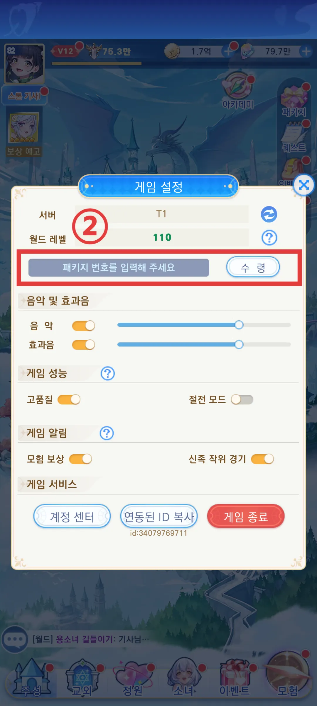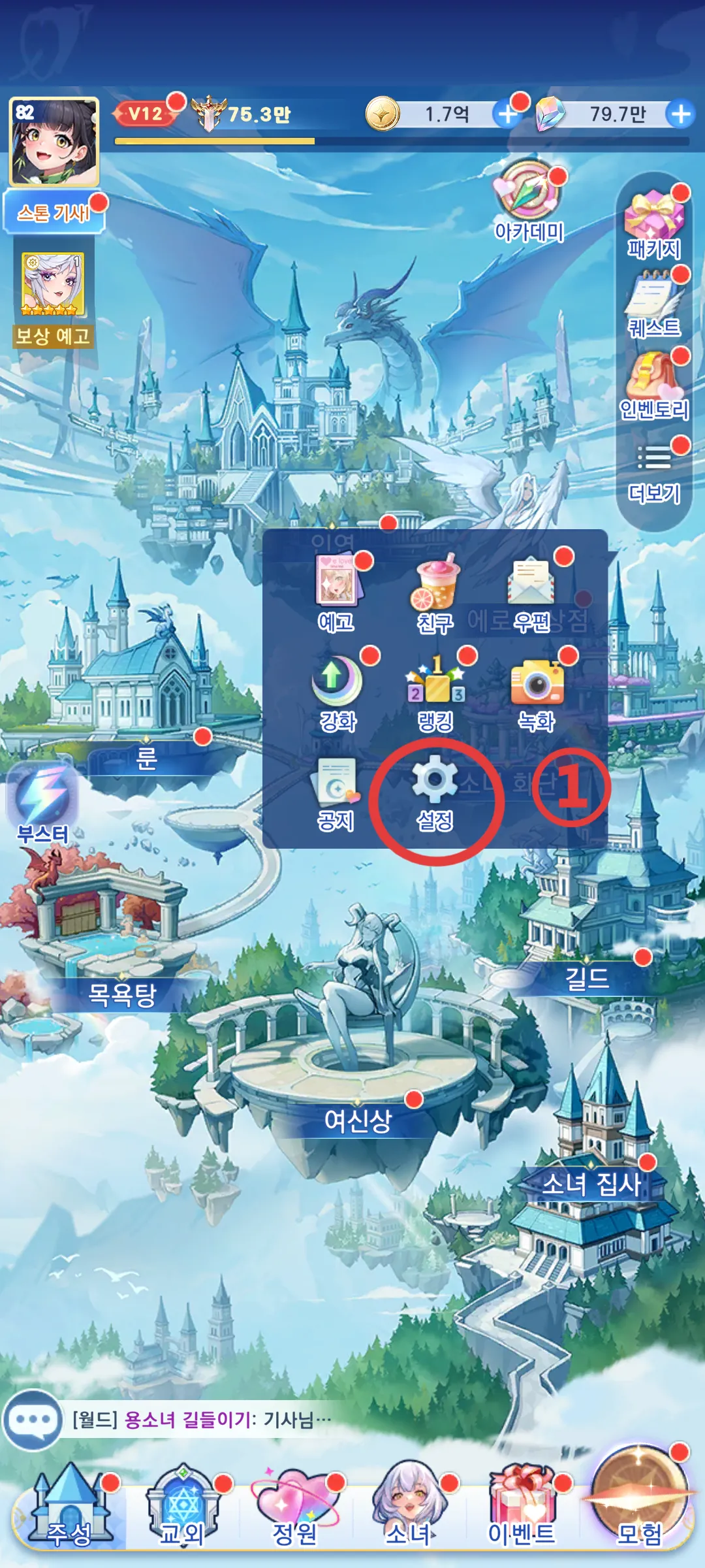 1. κ²μ λ©μΈ νλ©΄μμ μ€μ λ²νΌμ ν΄λ¦νμΈμ.