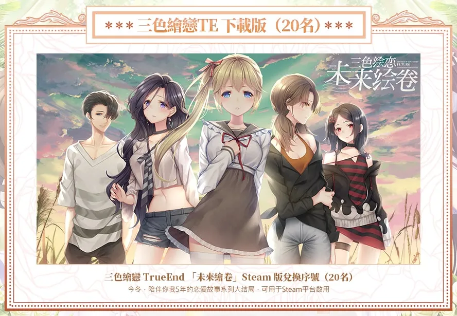 只要 留言 或 發佈筆記 就有機會獲得《三色繪戀》百萬紀念套裝 & Steam兌換序號~